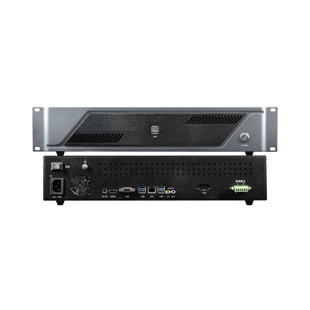 采用全鋁合金拉絲工藝,標(biāo)準(zhǔn)19寸機(jī)柜式安裝設(shè)計(jì),外型沉穩(wěn)大氣、細(xì)節(jié)精致機(jī)身卻配備高端配置,主要裝載無(wú)紙化會(huì)議投影軟件,配合無(wú)紙化其他設(shè)備實(shí)現(xiàn)參會(huì)人員可自行將講稿內(nèi)容投影到會(huì)議室大屏幕,或者有秘書(shū)終端管理后再投影;會(huì)議秘書(shū)還可根據(jù)本單位的要求選擇宣傳片、音樂(lè)進(jìn)行投影播放。